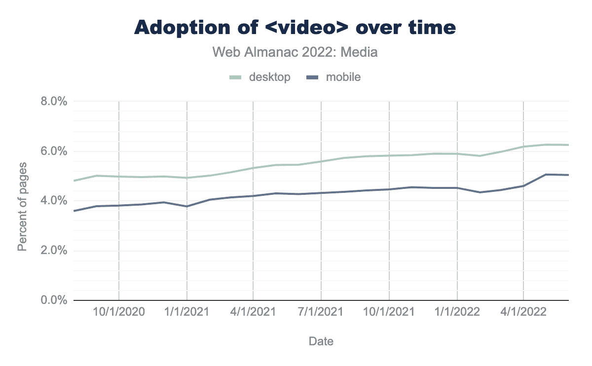 So there you have it, a snapshot of the state of media on the web in 2022. We’ve seen just how pervasive images and – increasingly – videos are on the web, and have gained some insight into how the web’s images and videos are encoded and embedded. The most exciting developments this year are the accelerating adoption of AVIF and the ever-increasing adoption of both lazy-loading and adaptive bitrate streaming.