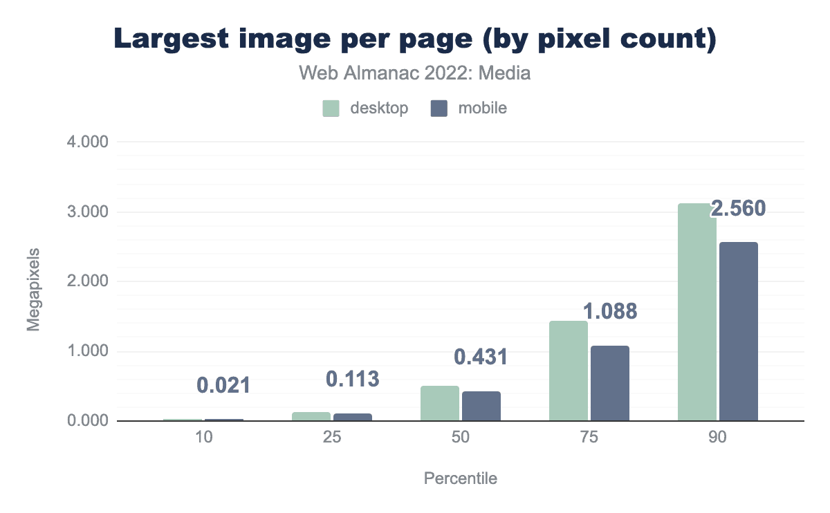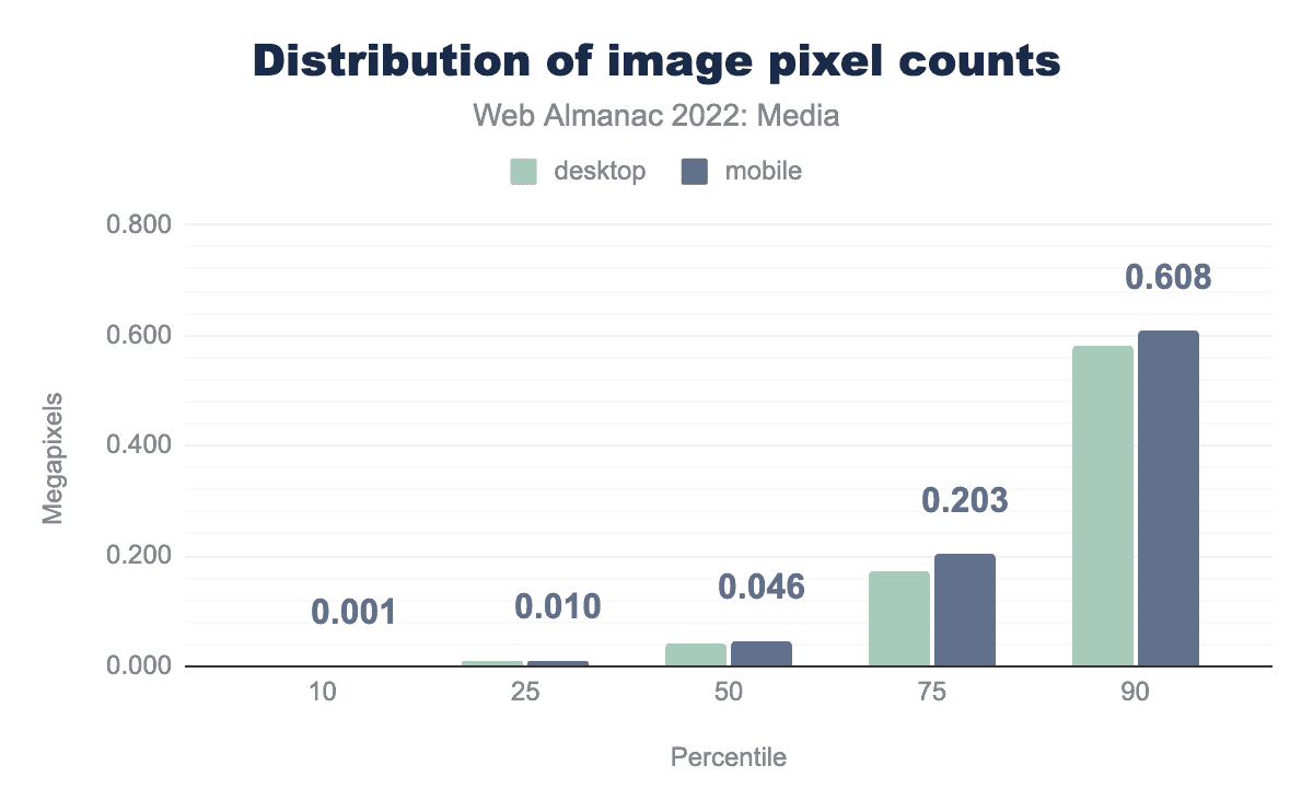 That may seem small, but the median page includes at least one <img> that contains almost 10 times more pixels than the median <img> element.