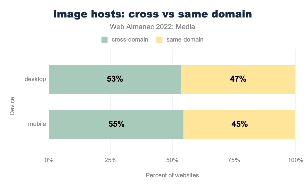 The fact that a growing majority of images are being delivered across domains underscores how hard images are to get right, and the benefits of enlisting an image CDN to handle your media for you.