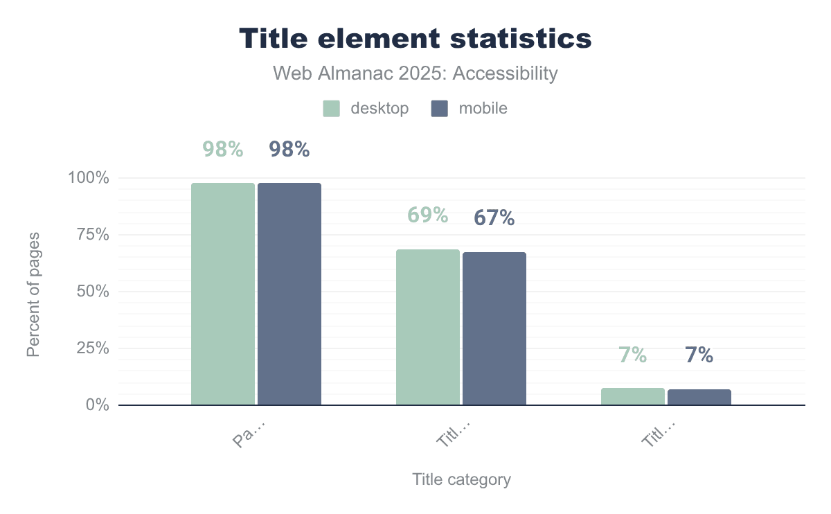 This year, text contrast pass rate improved by roughly 1% compared to 2024. But only 31% of mobile sites currently meet minimum color contrast requirements. Since mobile experiences depend heavily on clear visibility, this gap is a real problem for users accessing the web on their phones.